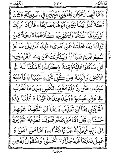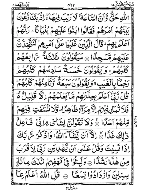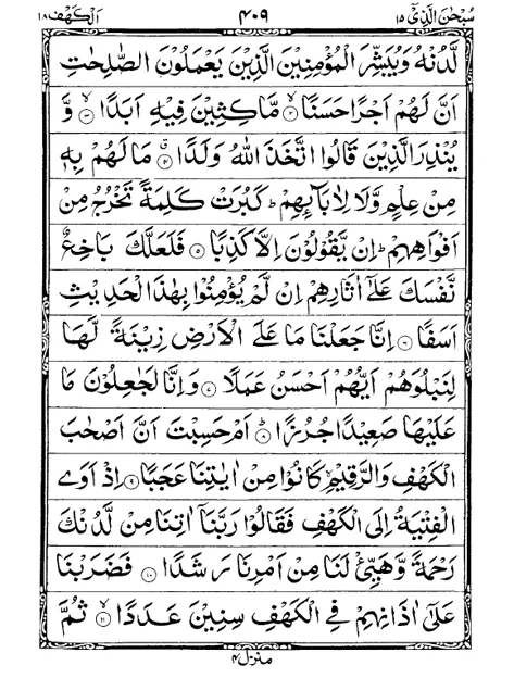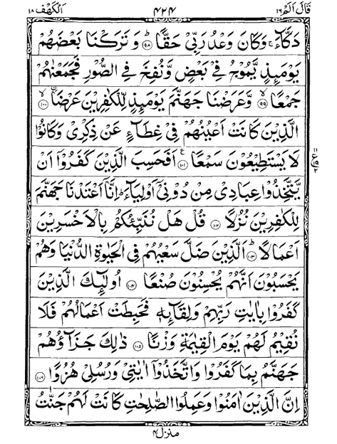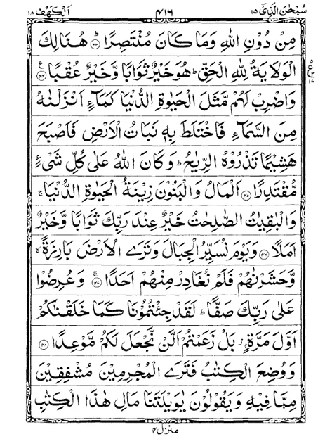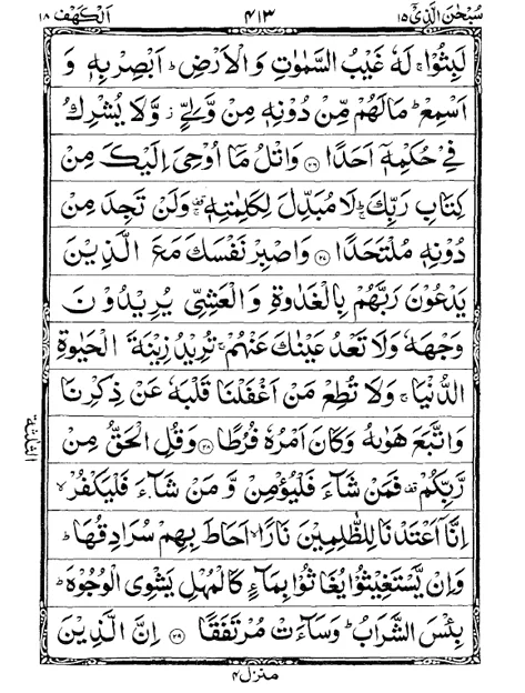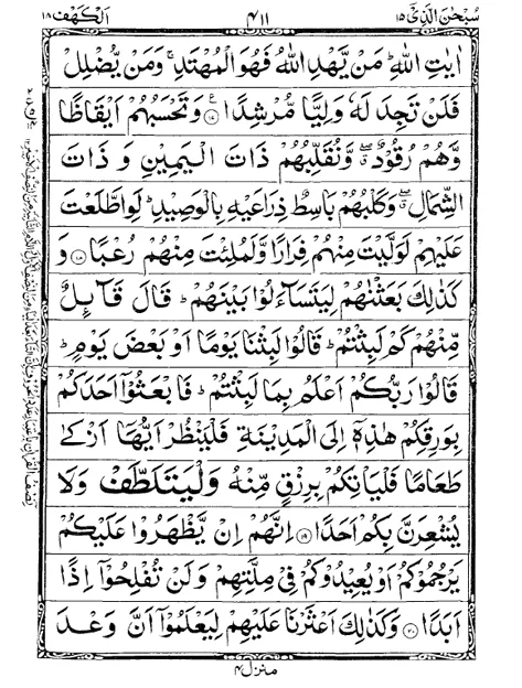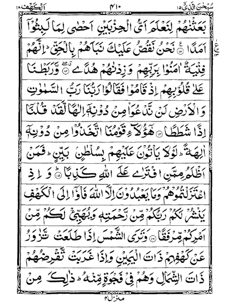 Below is the 13 lines version of Al Kahf. If you are not familiar with the thirteen lines Quran version and reciting in it is difficult, then you may read in 15 lines version or 16 liner version.